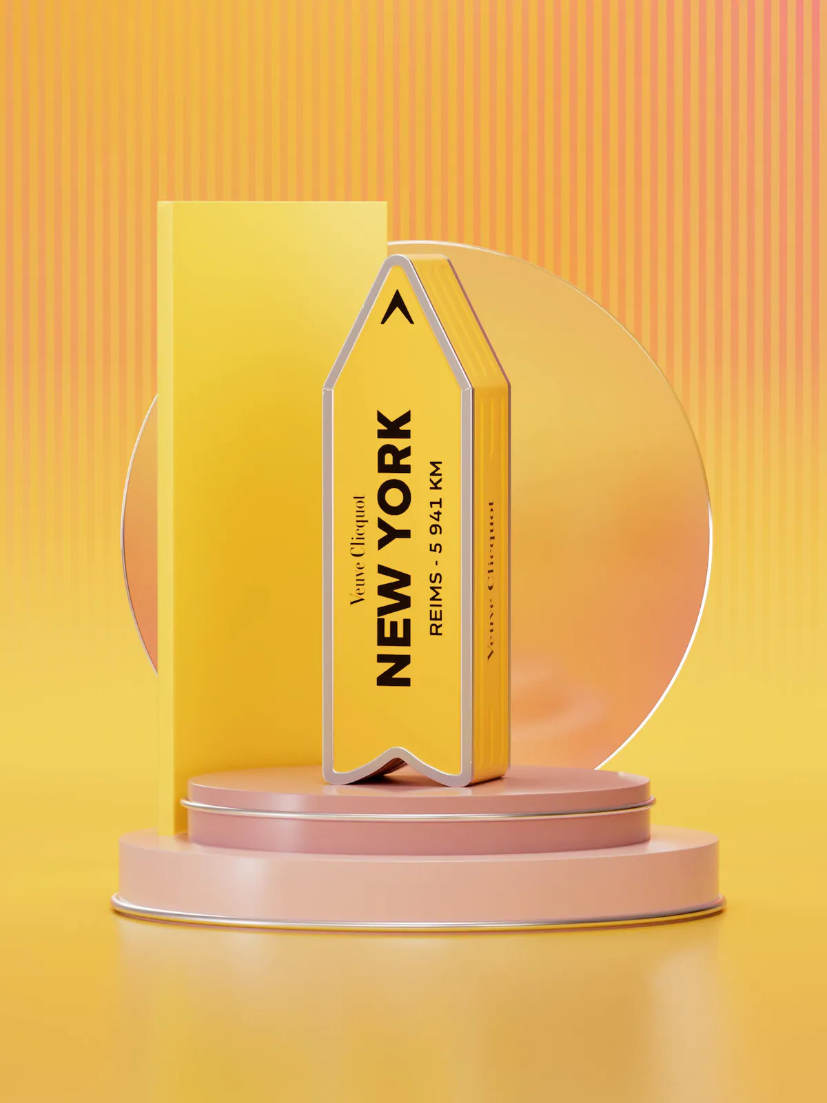 Die Personalisierung ist ganz einfach: Geben Sie einen kurzen Text mit maximal 12 Zeichen an – zum Beispiel einen Namen, ein Datum oder einen Ort. Unter Ihrem Text steht die Entfernung nach Reims, wo sich die historischen Weinkeller von Veuve Clicquot befinden. Wenn Sie keinen Ortsnamen angeben, kontaktieren wir Sie, um den Ausgangspunkt für die Entfernung zu Reims zu bestimmen.